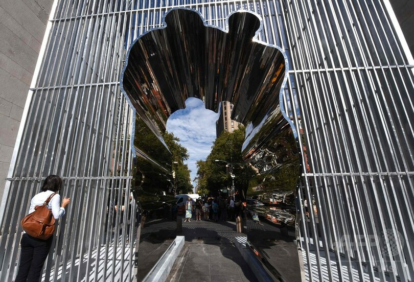 ニューヨーク市の複数の区に展示された作品は、安全柵を芸術的なシンボルに変容させたもので、展示場所によって形が異なる。一般公開は12日から2018年2月11日まで。(c)AFP