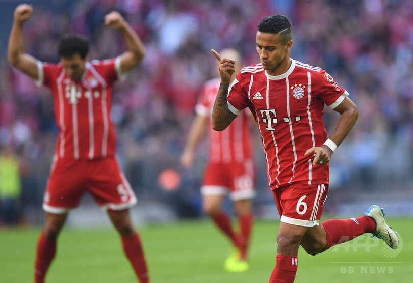 この勝利でバイエルンは、首位ボルシア・ドルトムント(Borussia Dortmund)との勝ち点差を2に縮めた。ドルトムントはRBライプツィヒ(RB Leipzig)に敗れ、今季リーグ戦初黒星を喫している。(c)AFP/Kit Holden
