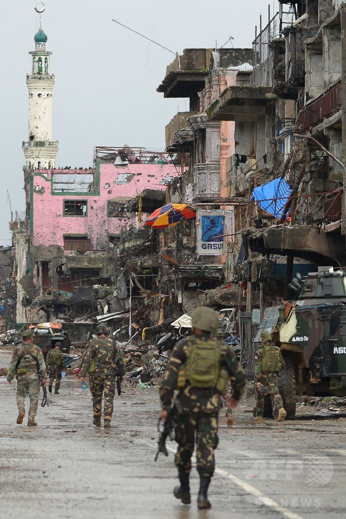 【10月17日 AFP】(写真追加)フィリピンのロドリゴ・ドゥテルテ(Rodrigo Duterte)大統領は17日、イスラム過激派組織「イスラム国(IS)」に忠誠を誓う武装勢力と政府軍との戦闘が続いていた南部ミンダナオ(Mindanao)島マラウィ(Marawi)が「テロリストから解放」されたと宣言した。