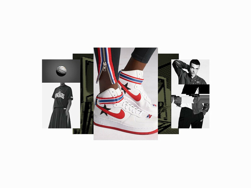 今回発売するコレクションでは、バスケットボールに着想を得たメンズ・ウィメンズのアパレルとフットウェアを展開。ティッシは、「ヴィクトリアス・ミノタウルス」という架空のバスケットボールチームのオフコートユニフォームをテーマに、タウンユース向けのコレクションを制作。現代的なスポーツスタイルをよりエレガントにし、進化させた。時代の異なるスポーツウェアのアイコンを組み合わせ、男性向けに4スタイル、女性向けに3スタイルデザインし、オックスフォードシャツやトラックパンツ、バーシティジャケットを含む特徴的なスタイルとアクセサリーを提案する。さらに、赤・白・青のストライプバンドがハイカット部分にデザインされたスニーカー「エア フォース 1」も展開。全てのアイテムには「ナイキ」のスウッシュと、ティッシを象徴するマークである“星”を組み合わせ、NBAの公式ロゴに見立てたタグがあしらわれる。