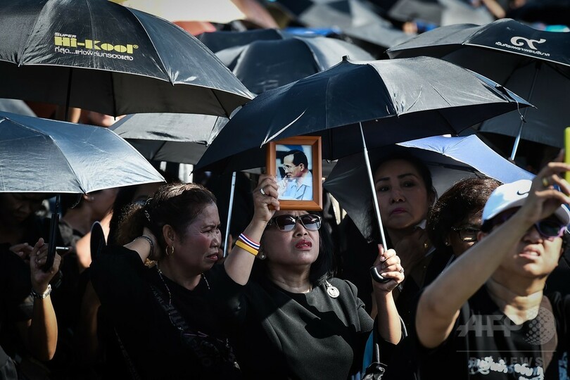 葬儀は25日から5日間の日程で、大規模なパレードや文化的パフォーマンス、仏教の式典などが王宮(グランドパレス、Grand Palace)前に建設されたきらびやかな火葬施設を中心に執り行われる。(c)AFP/Sally MAIRS