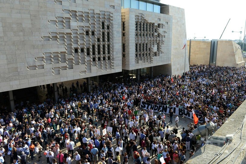 首都バレッタ(Valletta)に集まった大勢の人々は、16日に殺害されたカルアナガリチアさんに哀悼の意を表し、「正義のための国家的なデモ」を行った。