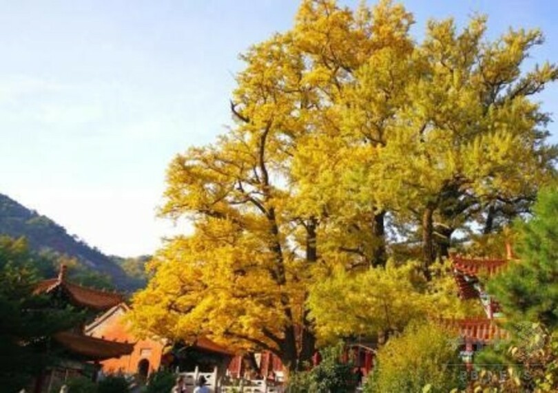 【10月25日 CNS】秋も深まり、中国・河南省(Henan)魯山県(Lushan)にある文殊寺では、境内にある樹齢2800年以上のイチョウの木が黄金色に色づいている。