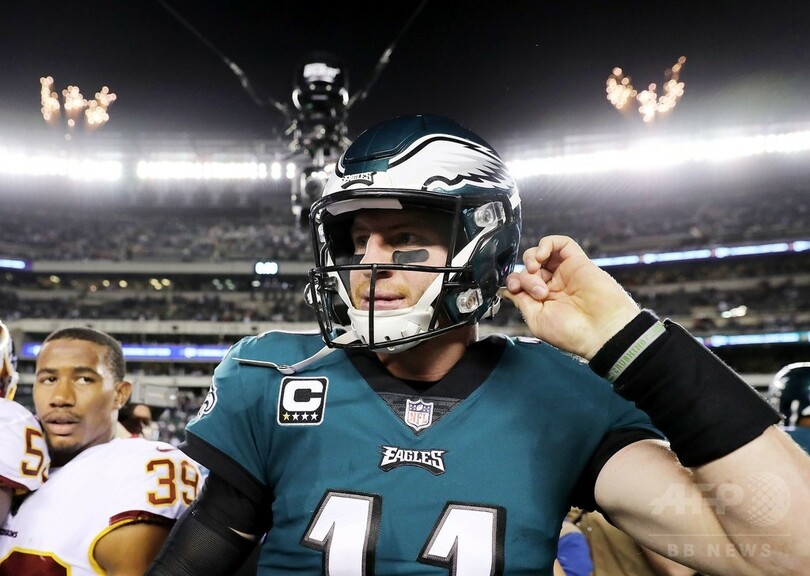 【10月24日 AFP】17NFLは23日、第7週の1試合が行われ、QBカーソン・ウェンツ(Carson Wentz)が4本のタッチダウンパスに成功したフィラデルフィア・イーグルス(Philadelphia Eagles)が34-24でワシントン・レッドスキンズ(Washington Redskins)に勝利し、開幕から7試合を消化した時点での成績を今季リーグ最高となる6勝1敗に伸ばした。