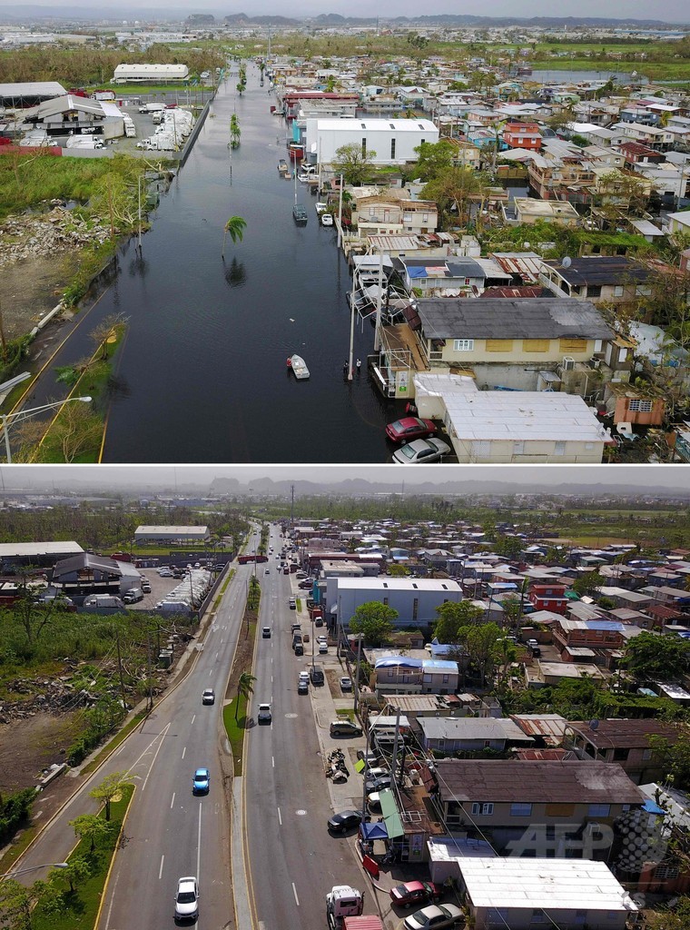 【10月24日 AFP】先月ハリケーン「マリア(Maria)」が直撃し、大規模な被害を受けたカリブ海(Caribbean Sea)の米自治領プエルトリコ(Puerto Rico)。被災直後とその約1か月後の様子を写真で紹介する。(c)AFP