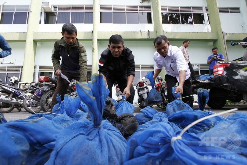 【10月25日 AFP】インドネシア当局は25日、同国スマトラ(Sumatra)島東部沖で絶滅危惧種センザンコウ101匹を生きたまま押収したと発表した。保護されたセンザンコウは海外で取引された場合、およそ150万ドル(約1億7000万円)の価値に相当すると、地元環境保護団体は推計している。