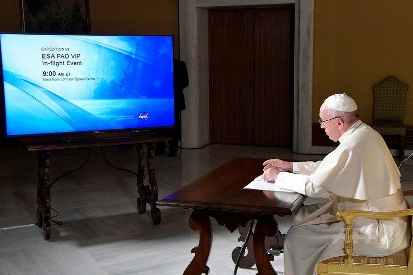 【10月27日 AFP】ローマ・カトリック教会のフランシスコ(Francis)法王が26日、国際宇宙ステーション(ISS)に滞在中の宇宙飛行士6人と映像中継で交信し、「宇宙における人間の存在」など哲学的な問答を行った。