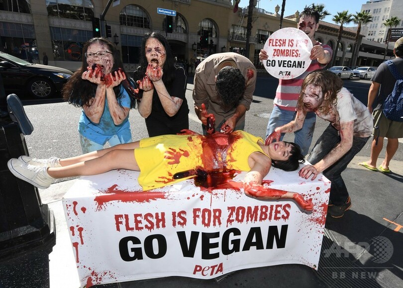 動物愛護団体PETA、ゾンビに扮して食肉消費に抗議 米