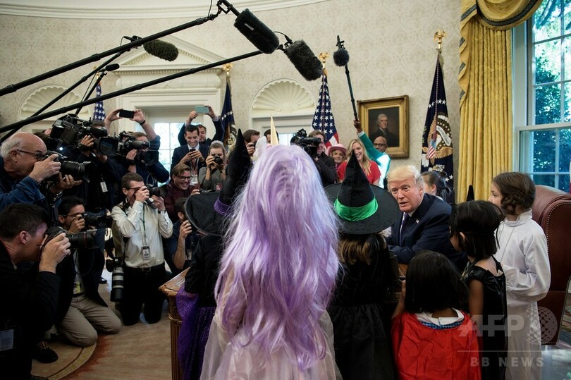 【10月28日 AFP】ドナルド・トランプ(Donald Trump)米大統領は27日、ハロウィーンを前に首都ワシントン(Washington D.C.)にあるホワイトハウス(White House)の大統領執務室(Oval Office)に、ホワイトハウス担当記者の子どもたちを招待した。(c)AFP