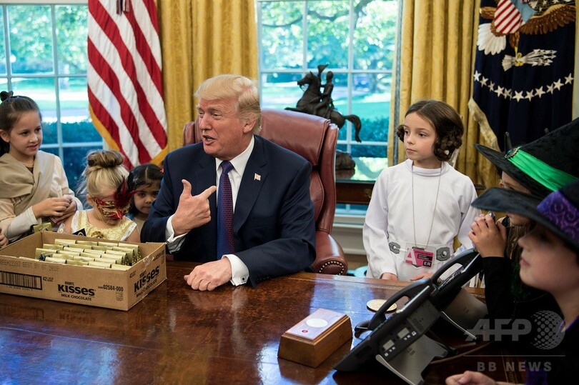 【10月28日 AFP】ドナルド・トランプ(Donald Trump)米大統領は27日、ハロウィーンを前に首都ワシントン(Washington D.C.)にあるホワイトハウス(White House)の大統領執務室(Oval Office)に、ホワイトハウス担当記者の子どもたちを招待した。(c)AFP