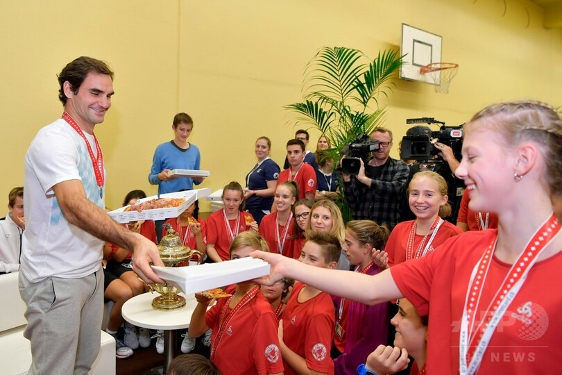 元ボールボーイのフェデラー、現役キッズと「勝利のピザ」楽しむ