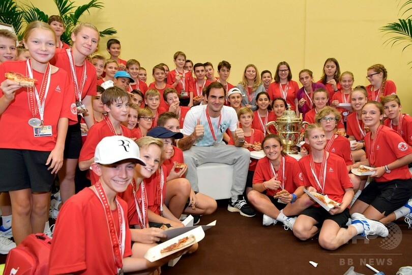 元ボールボーイのフェデラー、現役キッズと「勝利のピザ」楽しむ