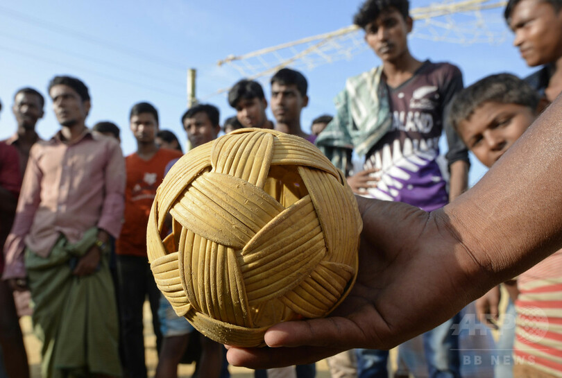 ミャンマーで人気の球技「チンロン」、ロヒンギャ難民キャンプに娯楽と喜び