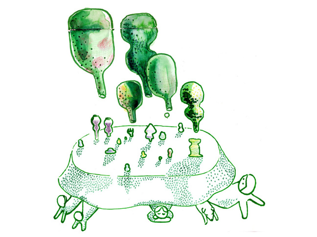 10月28日〜11月9日に開催されるイベント「MOSS MOSS Secrets of Southern Japan」では、フィンランドのデザインユニット「カンパニ-(COMPANY)」のアーム・ソン(Aamu Song)とヨハン・オリン(Johan Olin)の最新プロジェクトを紹介。伝統文化を大切にしつつも遊び心やアグレッシブさをこめることを恐れない気鋭のユニットは、九州からインスピレーションを受け、こたつカバーや提灯、長太郎人形などを彼らのフィルターで見つめ直し、新たなプロダクトへと転化。スパイラル1階のMINA-TOでも連動企画により、11月1日~12日の期間同タイトルの展示が開催される。この企画にあわせて、彼らの作品のひとつであるChurch bell(サウンドドーム)に、ミナ ペルポン デザイナー 皆川明(Akira Minagawa)のデザインを描いた限定バージョンも並ぶ。