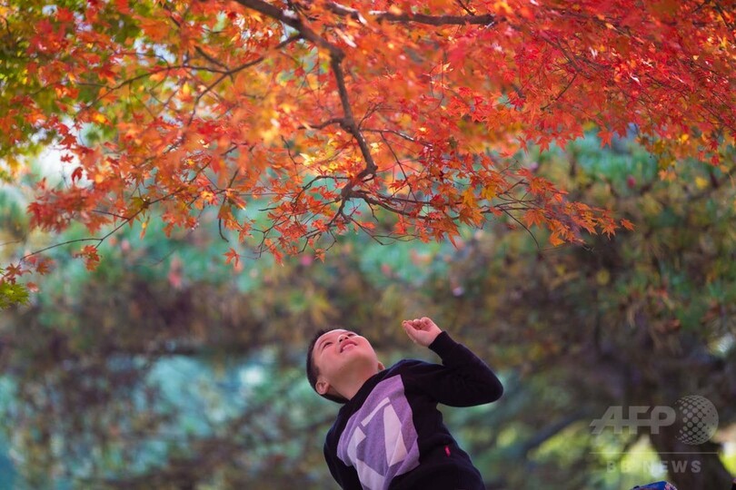 その名に慕いて、各地から多くの観光客が紅葉を観るために廬山風景区に訪れていた。(c)CNS/JCM/AFPBB News