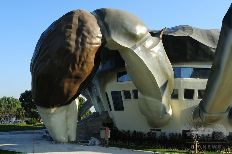 ステンレス製で、外形は継ぎ目も見当たらいほどの完成度だ。カニの腹部に当たる部分に3層の空間を作り、くつろぎスペースや娯楽、上海ガニに関連する体験コーナーなどを集めて一体化させた施設を作る予定だ。主要部分の建築はすでに完了しており、地面の景観を着工中。予定では、来年の下半期には完成し開園する見込みだ。(c)CNS/JCM/AFPBB News