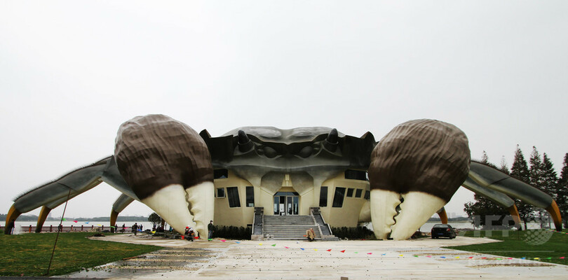 ステンレス製で、外形は継ぎ目も見当たらいほどの完成度だ。カニの腹部に当たる部分に3層の空間を作り、くつろぎスペースや娯楽、上海ガニに関連する体験コーナーなどを集めて一体化させた施設を作る予定だ。主要部分の建築はすでに完了しており、地面の景観を着工中。予定では、来年の下半期には完成し開園する見込みだ。(c)CNS/JCM/AFPBB News