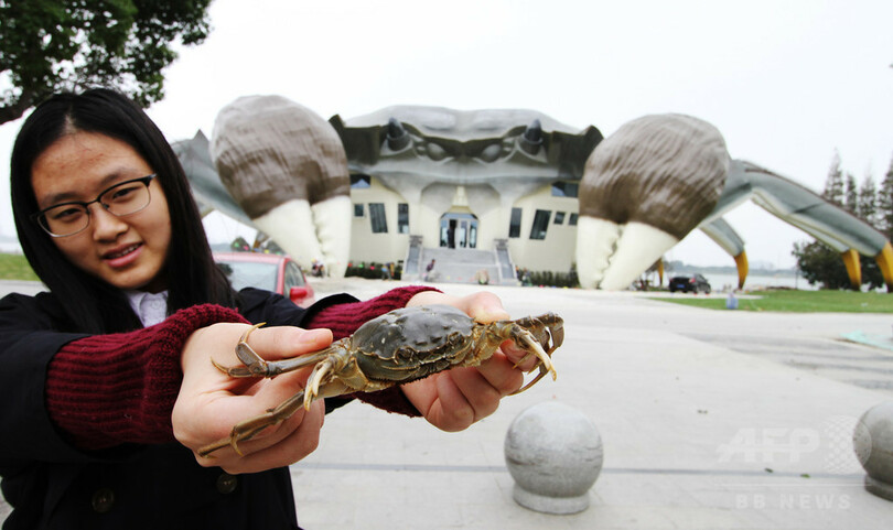 ステンレス製で、外形は継ぎ目も見当たらいほどの完成度だ。カニの腹部に当たる部分に3層の空間を作り、くつろぎスペースや娯楽、上海ガニに関連する体験コーナーなどを集めて一体化させた施設を作る予定だ。主要部分の建築はすでに完了しており、地面の景観を着工中。予定では、来年の下半期には完成し開園する見込みだ。(c)CNS/JCM/AFPBB News