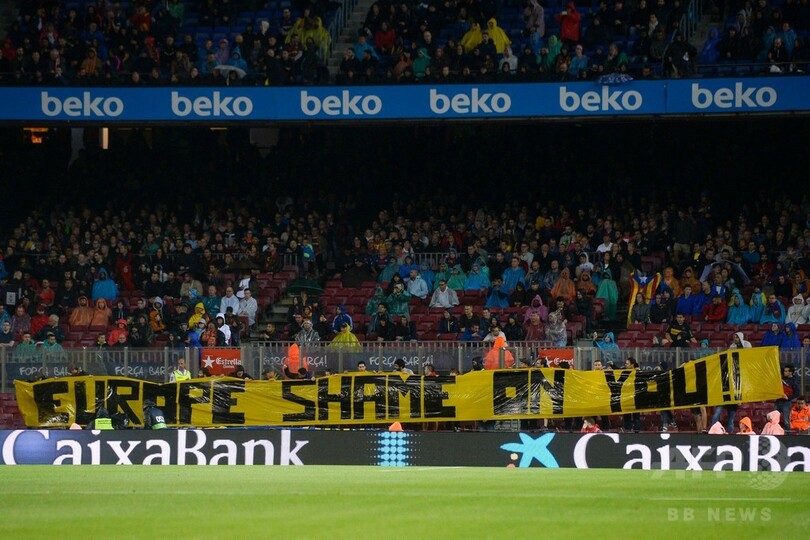 中央政府が自治州政府の閣僚8人を罷免し、反逆の罪で訴追することも考慮して勾留命令を出す中、この日のカンプ・ノウでは巨大なカタルーニャ州の旗と、英語とカタルーニャ語で「正義」と書かれた横断幕が掲げられた。欧州最大のスタジアムには、90分を通して「自由」の大合唱が響き渡り、バルセロナのゴール裏には「政治犯の釈放を」と書かれた紙や「恥を知れ欧州」と書かれた横断幕もあった。
