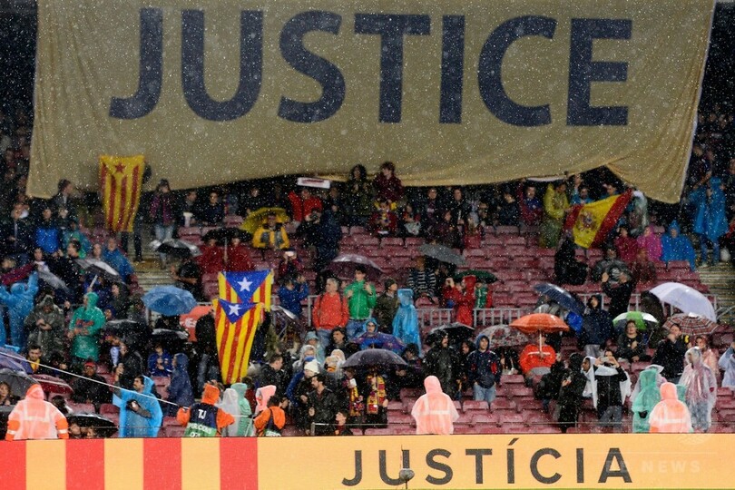 中央政府が自治州政府の閣僚8人を罷免し、反逆の罪で訴追することも考慮して勾留命令を出す中、この日のカンプ・ノウでは巨大なカタルーニャ州の旗と、英語とカタルーニャ語で「正義」と書かれた横断幕が掲げられた。欧州最大のスタジアムには、90分を通して「自由」の大合唱が響き渡り、バルセロナのゴール裏には「政治犯の釈放を」と書かれた紙や「恥を知れ欧州」と書かれた横断幕もあった。