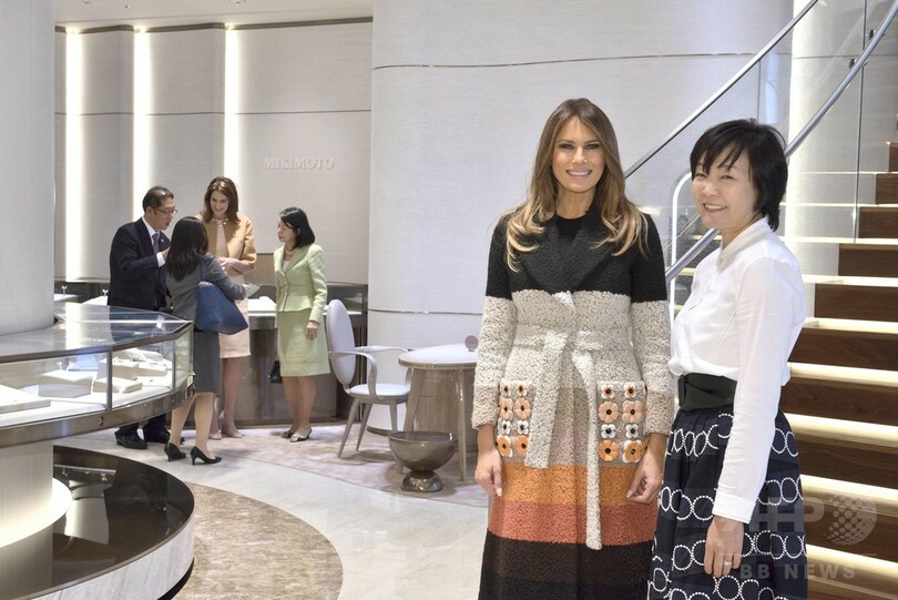 【11月5日 AFP】(写真追加)ドナルド・トランプ(Donald Trump)米大統領とともに来日したメラニア(Melania Trump)夫人は5日、安倍晋三(Shinzo Abe)首相の妻、昭恵(Akie Abe)夫人と東京・銀座の宝飾店「ミキモト(Mikimoto)」を訪れた。