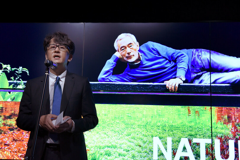 会場には、天野氏が設立した「アクアデザインアマノ(ADA)」のスタッフによる壁一面を使ったアクアリウム作品など11点のほか、同氏が超大判カメラで撮影した原生林や大河の特大写真パネルが展示されている。