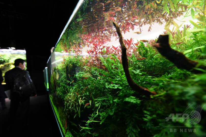 長年天野氏の撮影アシスタントを務めたアクアデザインアマノの大岩剛(Tsuyoshi Ohiwa)専務は、「(展示を通じて)自然や環境について考えるきっかけにしてほしい」と話した。2018年1月14日まで。(c)AFPBB News