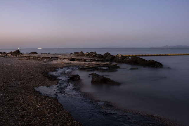 事故から2日たった9月12日、私はどうなっているのか見当もつかないまま、ボートでサラミス島へ向かった。最初に行ったセリニア(Selinia)ビーチ。真っ黒な海と、強烈な石油の臭いにショックを受けた。