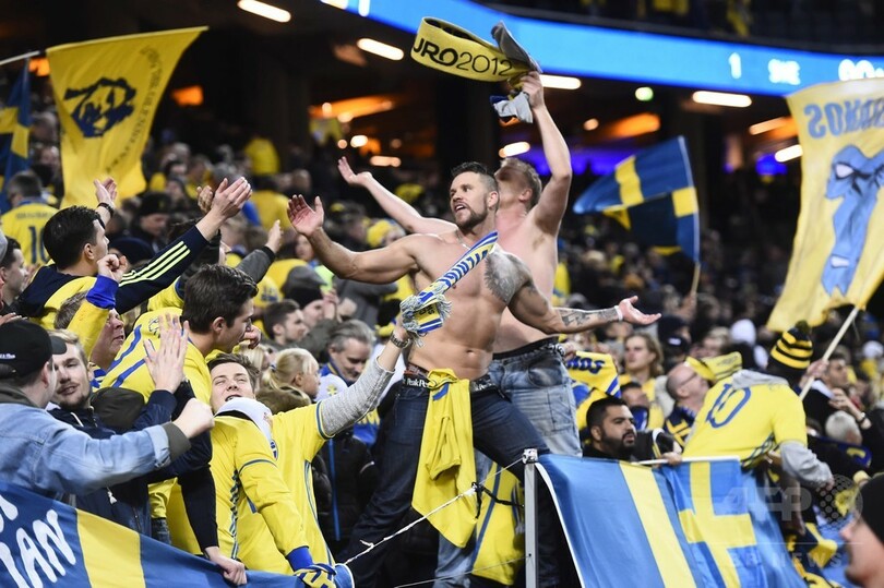 一方で勝利したスウェーデンは、2006年のドイツ大会以来となる本大会出場へ大きなチャンスを手にしている。(c)AFP