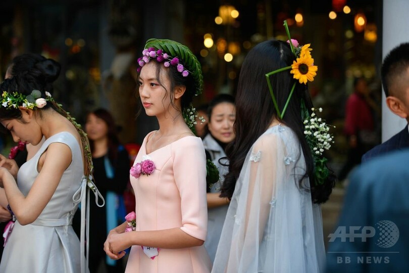 モデルが花の衣装で「花妖精」の座を争う 中国・昆明