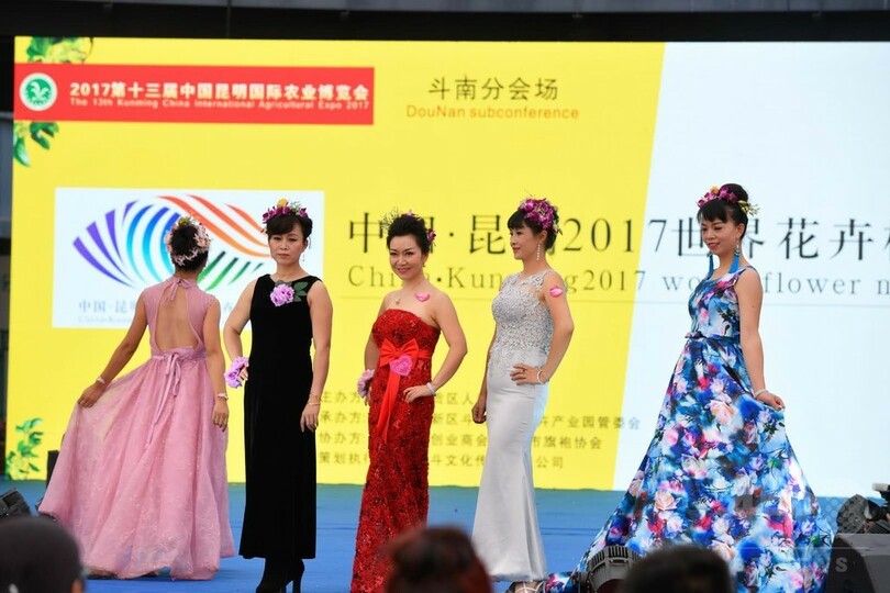 ファッションデザイナーの郭鴻(Guo Hong)氏は、「斗南鎮は中国だけでなくアジア最大の花取引市場として、花の材料が豊富。この花モデルコンテストの開催によって、もっと斗南の花をアピールし、地元の素材を用いた創作と、斗南産の花き産業の発展を後押ししたい」と語った。