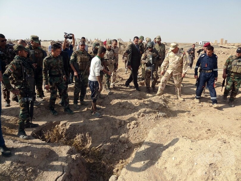 政府軍はISの恐怖支配の犠牲になった人々の集団墓地をこれまでに全国数十か所で発見し、多数の遺体を確認した。(c)AFP
