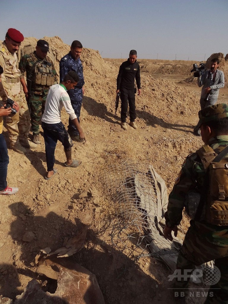 政府軍はISの恐怖支配の犠牲になった人々の集団墓地をこれまでに全国数十か所で発見し、多数の遺体を確認した。(c)AFP