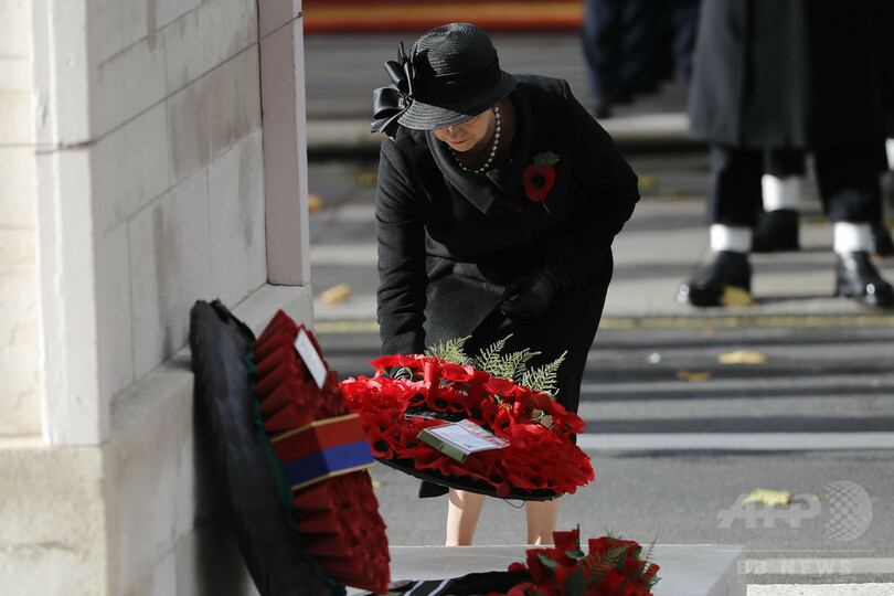 ロンドンの戦没者記念碑(Cenotaph)で行われるリメンバランス・サンデーの式典では、エリザベス女王が献花するのが伝統となっていた。しかし今年、女王は初めてバルコニーから式典を見守るにとどまり、長男チャールズ皇太子が英全土で同時に行われた2分間の黙とうの後、ポピー(ケシ)の花輪を記念碑にささげた。