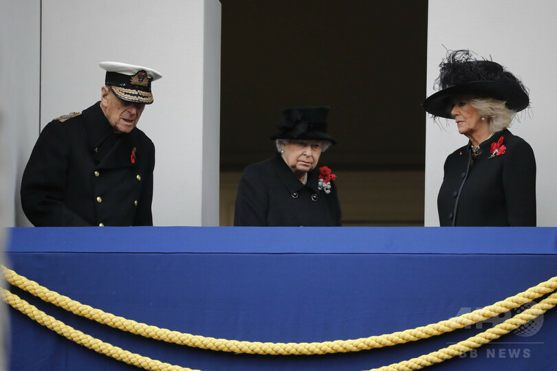 ロンドンの戦没者記念碑(Cenotaph)で行われるリメンバランス・サンデーの式典では、エリザベス女王が献花するのが伝統となっていた。しかし今年、女王は初めてバルコニーから式典を見守るにとどまり、長男チャールズ皇太子が英全土で同時に行われた2分間の黙とうの後、ポピー(ケシ)の花輪を記念碑にささげた。