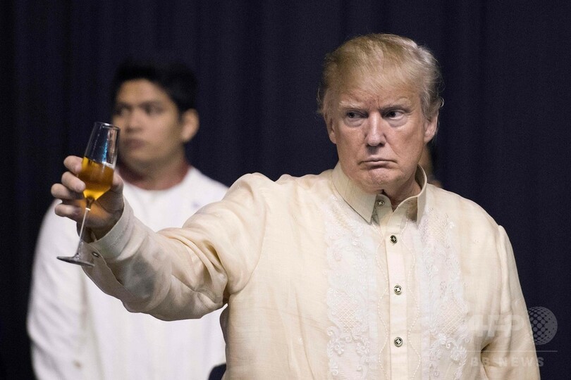 北朝鮮による核開発危機のさなか、トランプ氏は日本、韓国、中国、ベトナムを回った12日間のアジア歴訪の締めくくりとして前日、フィリピンに到着。同夜の夕食会では、ドゥテルテ氏がフィリピンのラブソングを歌い、トランプ大統領の注文で歌ったと上機嫌に語った。