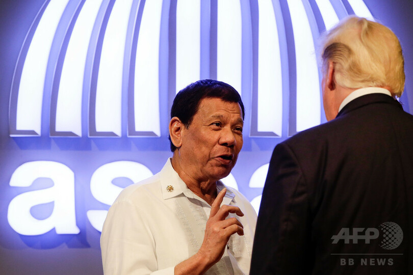 北朝鮮による核開発危機のさなか、トランプ氏は日本、韓国、中国、ベトナムを回った12日間のアジア歴訪の締めくくりとして前日、フィリピンに到着。同夜の夕食会では、ドゥテルテ氏がフィリピンのラブソングを歌い、トランプ大統領の注文で歌ったと上機嫌に語った。