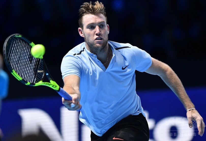 もう一方のボリス・ベッカー・グループ(Group Boris Becker)の試合では、第8シードのジャック・ソック(Jack Sock、米国)が5-7、6-2、7-6(7-4)で第5シードのチリッチに勝利し、準決勝進出へ望みをつないでいる。(c)AFP/John WEAVER