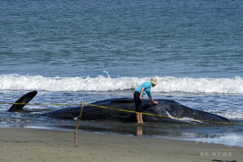 浜辺に打ち上げられたクジラ、9頭のうち4頭が死ぬ インドネシア