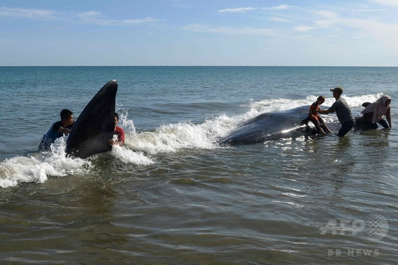 【11月15日 AFP】インドネシア西部アチェ(Aceh)州の浜辺にマッコウクジラ9頭が乗り上げ、懸命の救助活動が続けられたものの、うち4頭が死んだ。地元当局が14日、明らかにした。