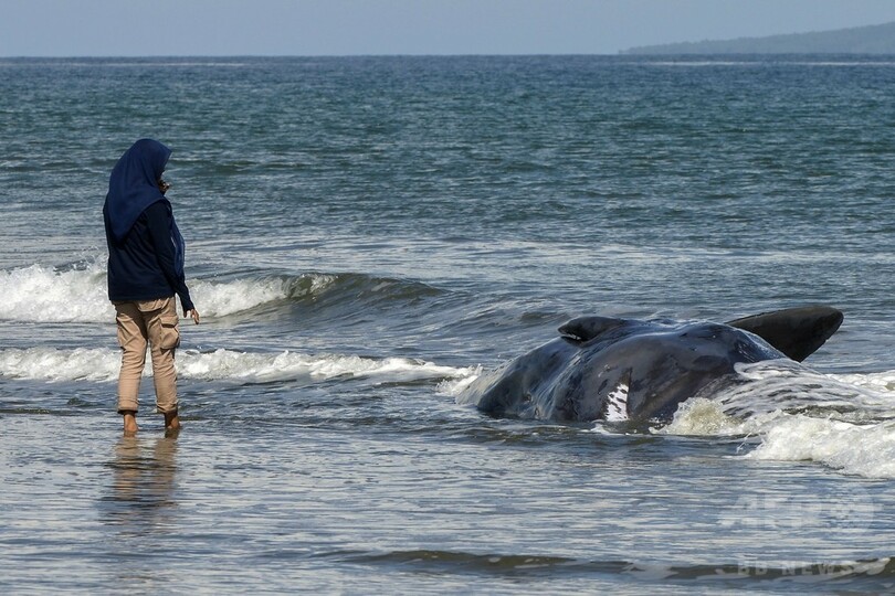 浜辺に打ち上げられたクジラ、9頭のうち4頭が死ぬ インドネシア