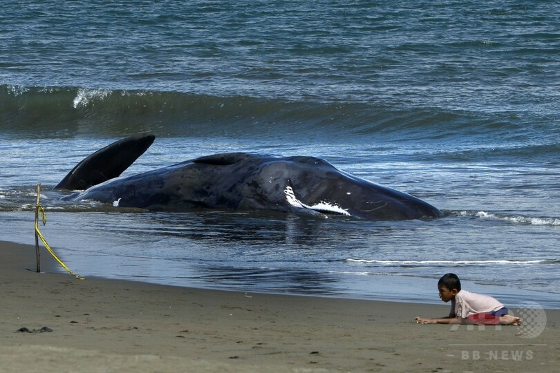 浜辺に打ち上げられたクジラ、9頭のうち4頭が死ぬ インドネシア