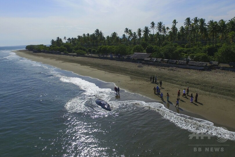 浜辺に打ち上げられたクジラ、9頭のうち4頭が死ぬ インドネシア