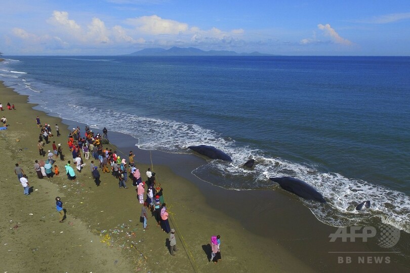 【11月15日 AFP】インドネシア西部アチェ(Aceh)州の浜辺にマッコウクジラ9頭が乗り上げ、懸命の救助活動が続けられたものの、うち4頭が死んだ。地元当局が14日、明らかにした。