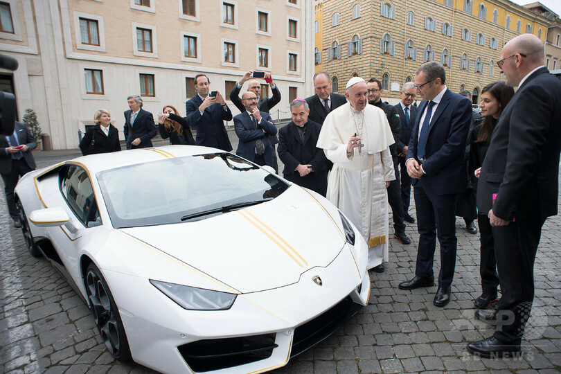 【11月16日 AFP】ローマ・カトリック教会のフランシスコ(Francis)法王は15日、イタリアの高級スポーツ車メーカー、ランボルギーニ(Lamborghini)から贈呈された白のスーパーカーを法王専用車に使用する代わりに競売に出品した。売り上げは慈善団体に寄付される。