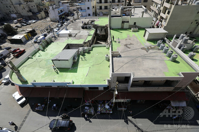 オマルさんは、「『Salam』の文字を建物85棟の屋上、1.3キロにわたって書いた...ここに暮らす人びとが平和的だということを伝えるために」「そして、レバノン全体が平和になってほしい」と語った。(c)AFP/Sara Hussein