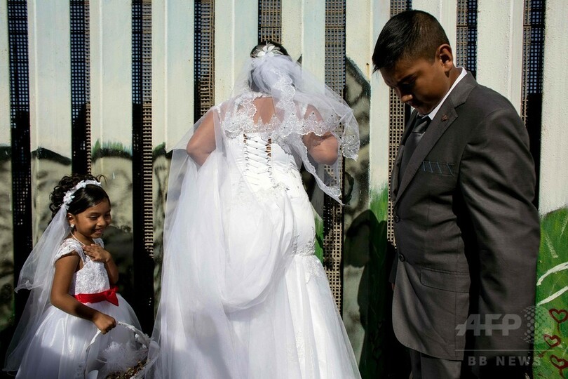 結婚式に出席した家族や友人たちのために、「希望の扉」という名で知られる国境フェンスの門を米国境警備隊が開放。式の立会人はティフアナ(Tijuana)市長の妻と、地元の人権団体の役員が務めた。
