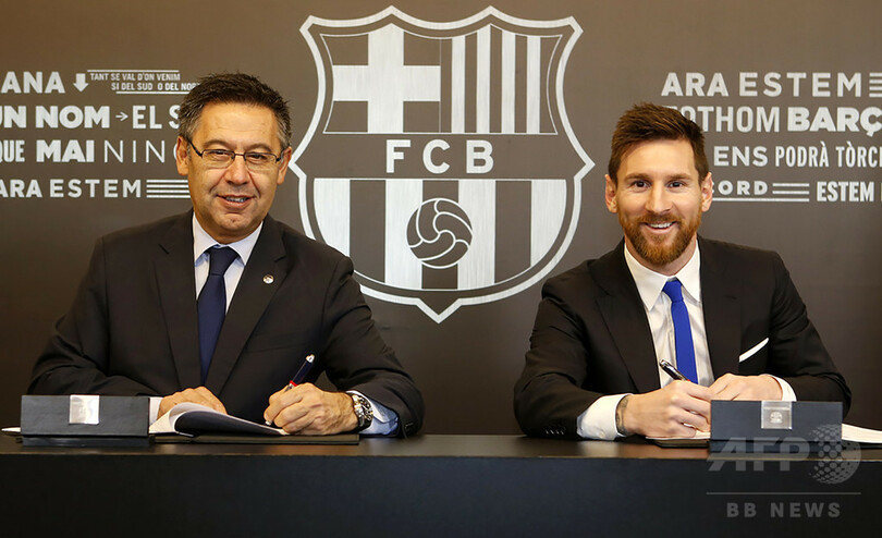 「新しい契約は、サッカー史上最高の選手であるメッシとクラブの関係を表している。彼は常にバルセロナで満足しており、エルネスト・バルベルデ(Ernesto Valverde)監督体制下の新しいプロジェクトでは、驚異的な能力を存分に発揮している」(c)AFP