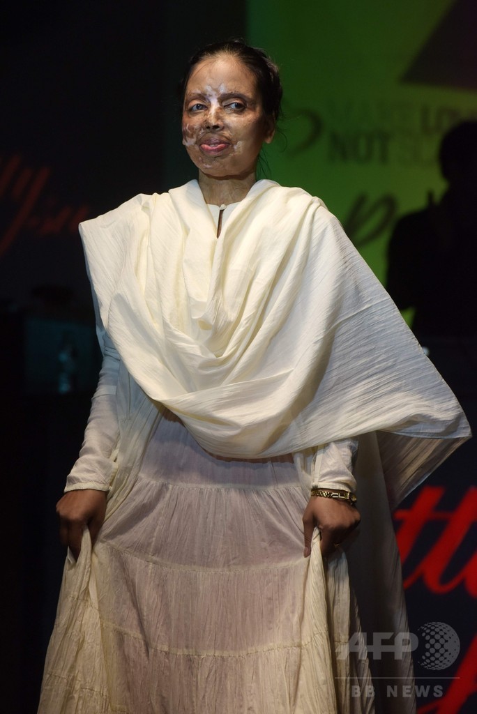 【11月26日 AFP】インドで25日、夫や近親者から酸を浴びせられる被害を受けた女性9人が、増加する酸攻撃の被害者たちのための初のファッションショーにモデルとして参加した。
