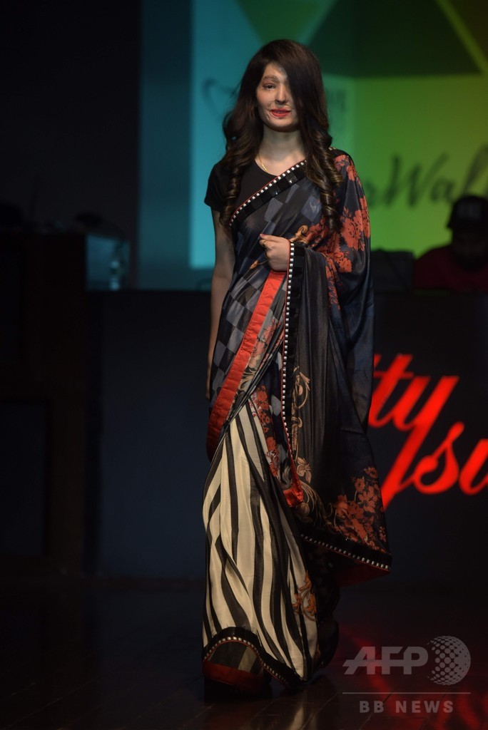 【11月26日 AFP】インドで25日、夫や近親者から酸を浴びせられる被害を受けた女性9人が、増加する酸攻撃の被害者たちのための初のファッションショーにモデルとして参加した。